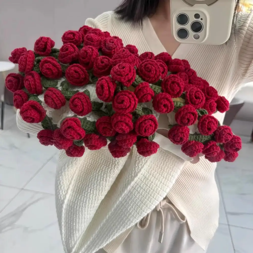 Available in elegant color options — romantic red, lavender purple, sunny yellow, and classic white — each bouquet blanket is a soft reminder that love, like crochet, is built one loop at a time.